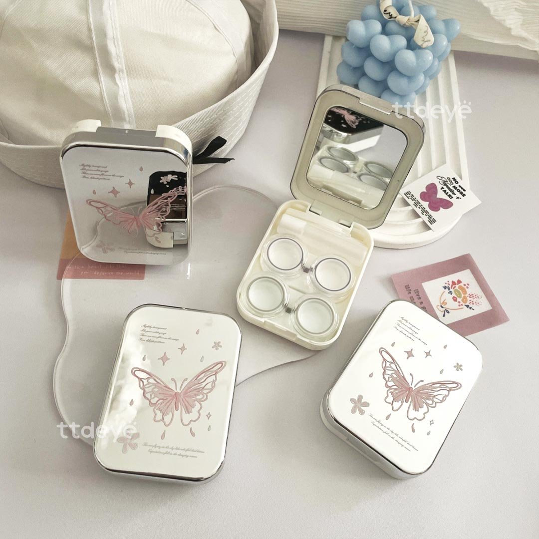 Introducing the Girly Butterfly Collection contact lens case, where style meets functionality! This sleek, rectangular case features a stunning mirrored finish that catches the eye. Available in two delightful options—pink and blue—each case is adorned with a charming butterfly design that adds a touch of whimsy.