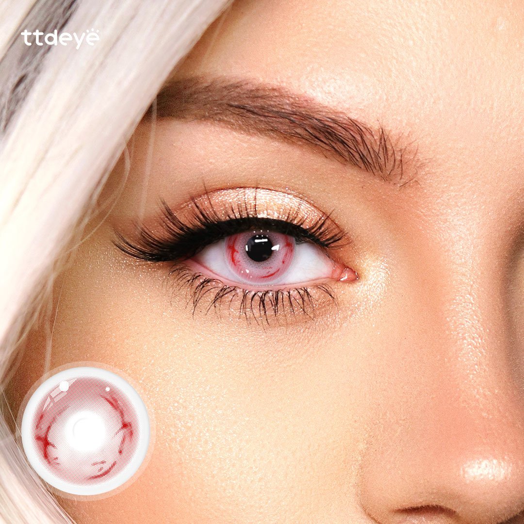Transform your look with Lustfire White, the ultimate lens for eerie cosplay effects. Featuring a seamless edge-free design, a stark white base, and a haunting grid-like pattern, these lenses are accented with realistic bloodstain details. Perfect for spectral or supernatural characters, they create an unforgettable, chilling gaze.