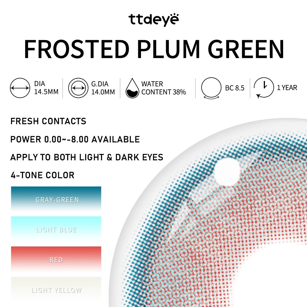 Tanto si te apasiona el maquillaje creativo, los looks de moda atrevidos o las lentillas que transforman tu imagen, Frosted Plum Green te ofrece un encanto cautivador con cada mirada.¡Convierte cada mirada en arte y expresa tu estilo único con Frosted Plum Green!