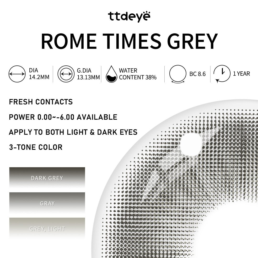 Rome Times Grey ofrece un suave tono gris con un delicado halo exterior para un agrandamiento natural. La capa de transición gris pálido añade un toque de luz, como nubes que se abren para revelar un cielo suave. Limpio, sutil y elegantemente natural.
