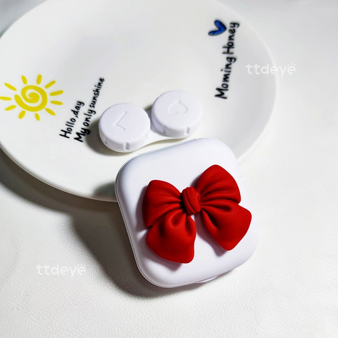 Introducing our 3D Floral Lens Case Collection, featuring a uniquely rounded square shape that combines elegance with practicality. Each case is crafted in a solid color and adorned with a delightful three-dimensional bow design, making it a stylish accessory for your lens care routine.