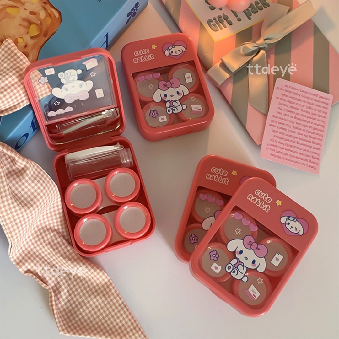 "Puppy Aura" Lens Case, available in two playful colors—blue and red. With its rounded rectangular shape and a unique half-transparent matte finish, this case strikes the perfect balance between functionality and charm. Featuring a cute puppy with big ears graphic, it adds a fun, whimsical touch to your lens care routine, while keeping your lenses safe in style.