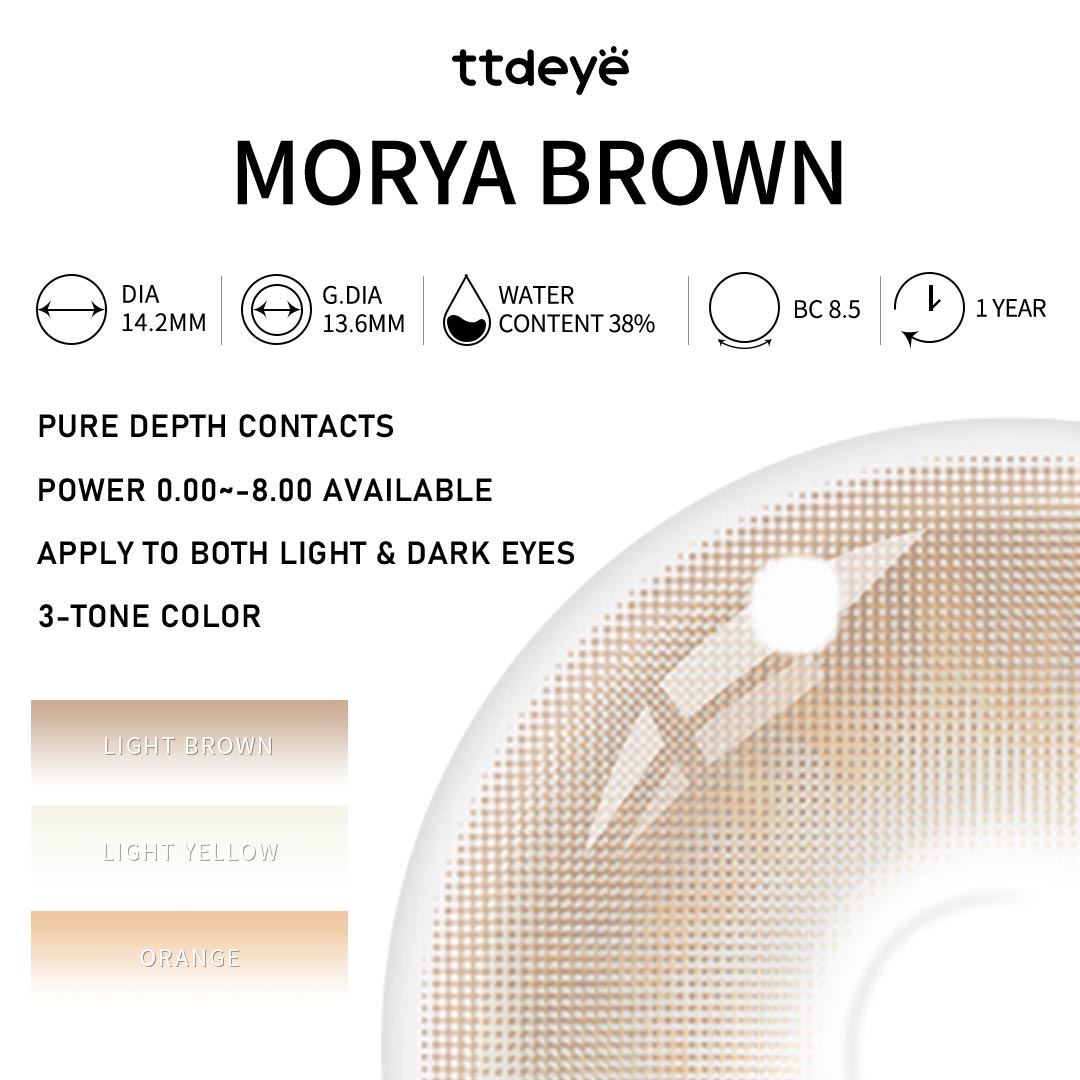 Inspiradas en los tonos brumosos de las montañas, las lentillas Morya Brown aportan un brillo sutil a tu mirada. Un borde marrón cálido se difumina en un suave ámbar, mientras que los delicados patrones naranjas del iris añaden un toque de elegancia natural. Naturales, refinadas y con una profundidad sutil.